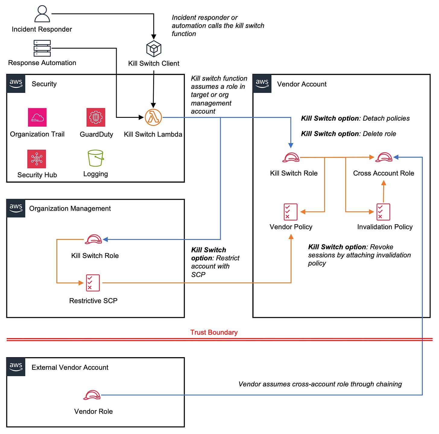 Kill switch AWS Lambda function immediately disables vendor access from a Security account in case of an incident where it is necessary to lockout the vendor.